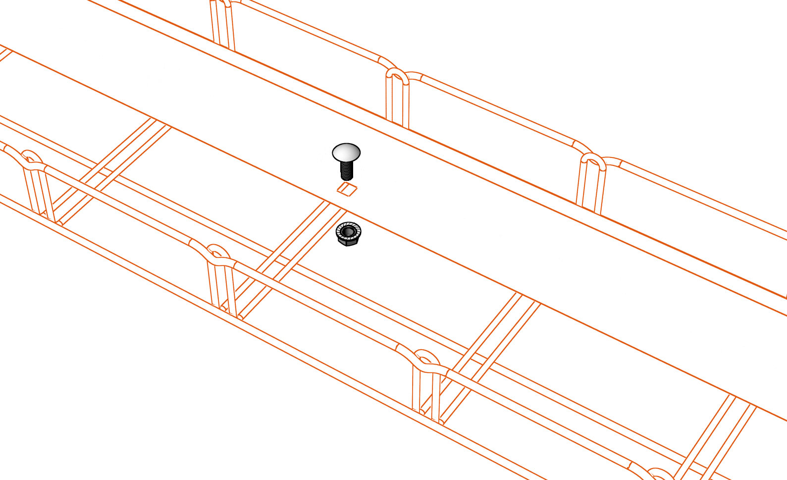 Der Verbinder SZM 1 ist der Grundverbinder des MERKUR 2 Systems. Er dient zur Verbindung der Gitterrinnen zu einer durchlaufenden Kabeltrasse. Der Verbindungssatz besteht aus Verbinderprofil (Lasche vom A-Typ), einer Torbandschraube M6x12 und einer Kragenmutter M6.